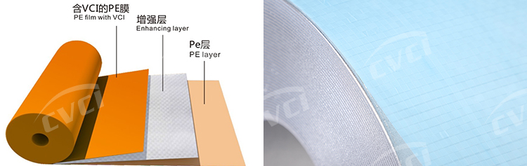 織物增強(qiáng)型防銹膜是一項(xiàng)專利產(chǎn)品,滿足國(guó)際綠色環(huán)保要求,具有高強(qiáng)度、耐戳穿、耐撕裂,全塑結(jié)構(gòu),安全環(huán)保、可印刷等性能。